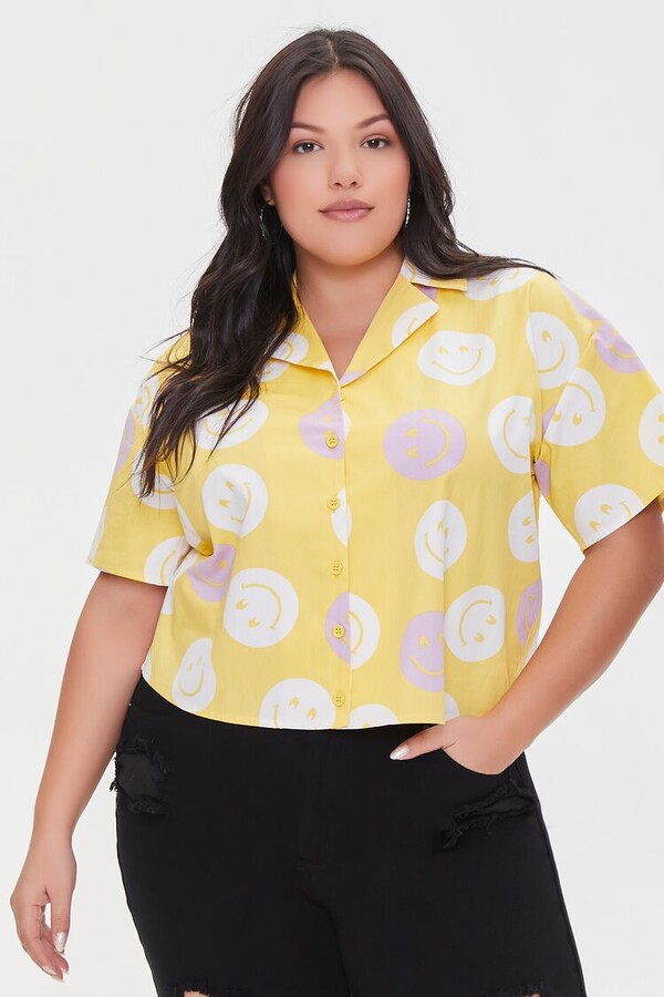 Forever 21 Plus Size Happy Face Print Shirt Shopstyle