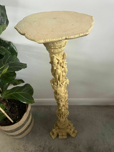 Vintage Dragon Carved White Resin Bone Celluloid Asian Side Table Plant Stand Vinterior