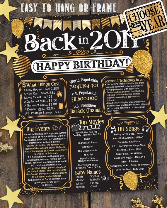 12th Twelve Birthday Party Decorations In Gold Or Rose Gold Remembering 2011 Gift For Men Women Turning 12 11x14 Unframed Print Etsy De